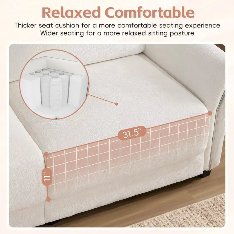 Comfortable Seat: This sofa features an extra-wide and ultra-thick seat cushion filled with high-density foam and zigzag springs, delivering exceptional resilience, plush comfort, and cloud-like softness.