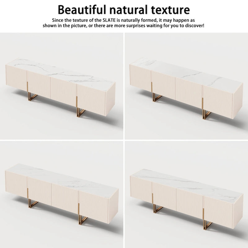 - High-Quality Construction & Stability: Built with durable sintered stone and supported by sturdy stainless steel legs, this TV stand offers a robust and stable structure. It ensures long-lasting support for your TV and other entertainment equipment.