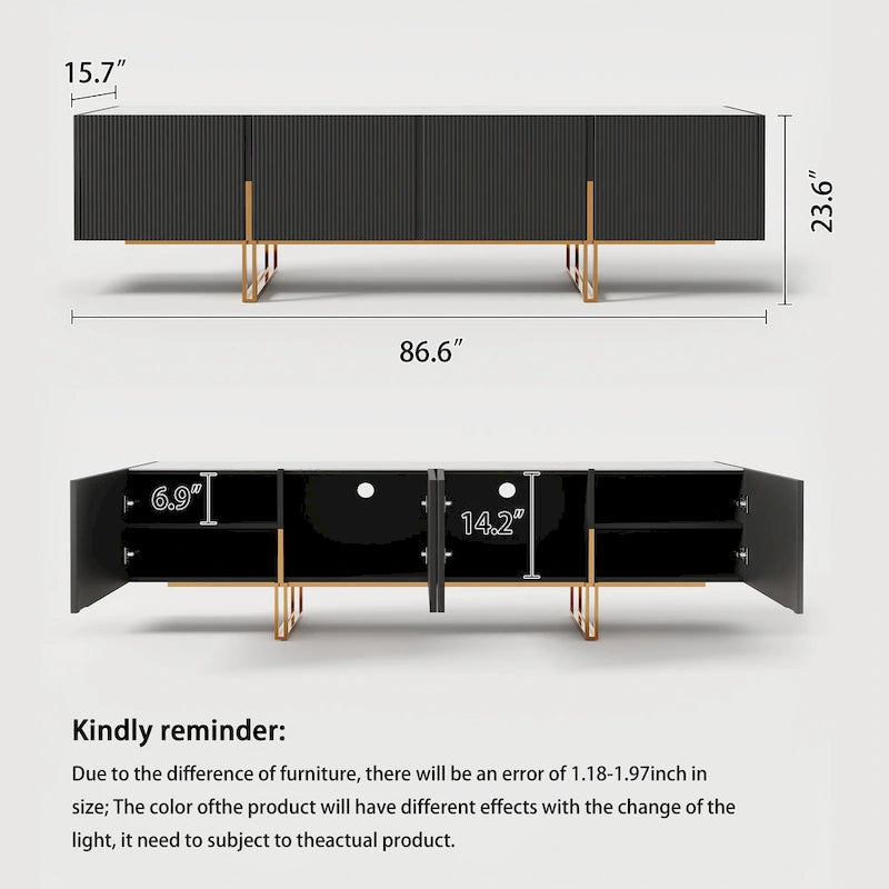 - Spacious Storage Solutions: The TV stand features 4 spacious doors and 2 inner shelves, providing ample storage for your media devices and accessories. This design keeps your entertainment area organized and clutter-free.