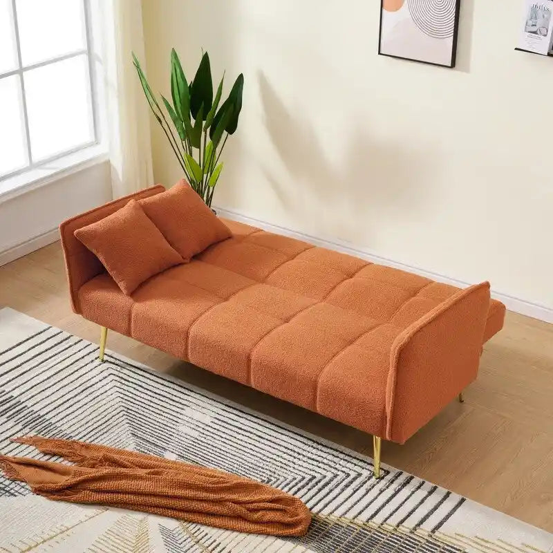 79.92 Teddy Velvet Upholstered Sofa Bed with Adjustable Back and Armrests