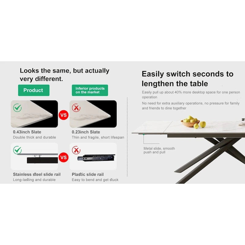 Easy to clean: Our Sintered stone dining table just requires minimal care. With this easy-to-clean surface, you can spend more time enjoying meals and less time on upkeep.