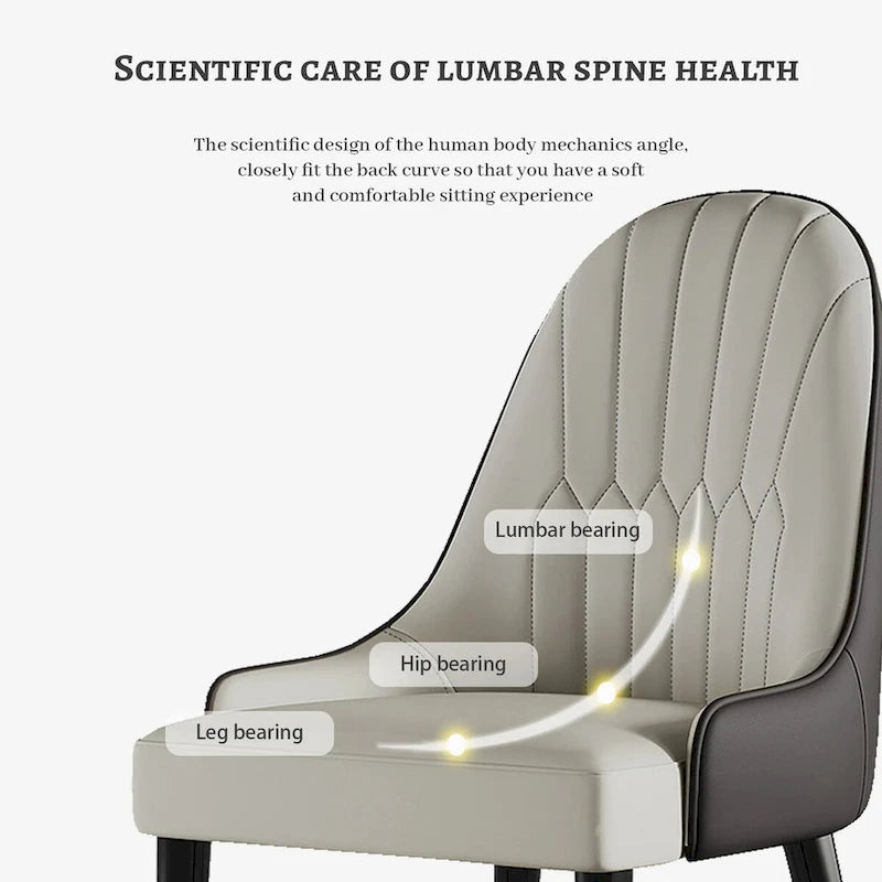 Comfortable Dining Chairs: These 8 side chairs are made of faux leather and filled with highly resilient foam. The curved backrest is ergonomically designed to provide better support and relieve back pressure, which increases comfort.The chair color is grey and brown.