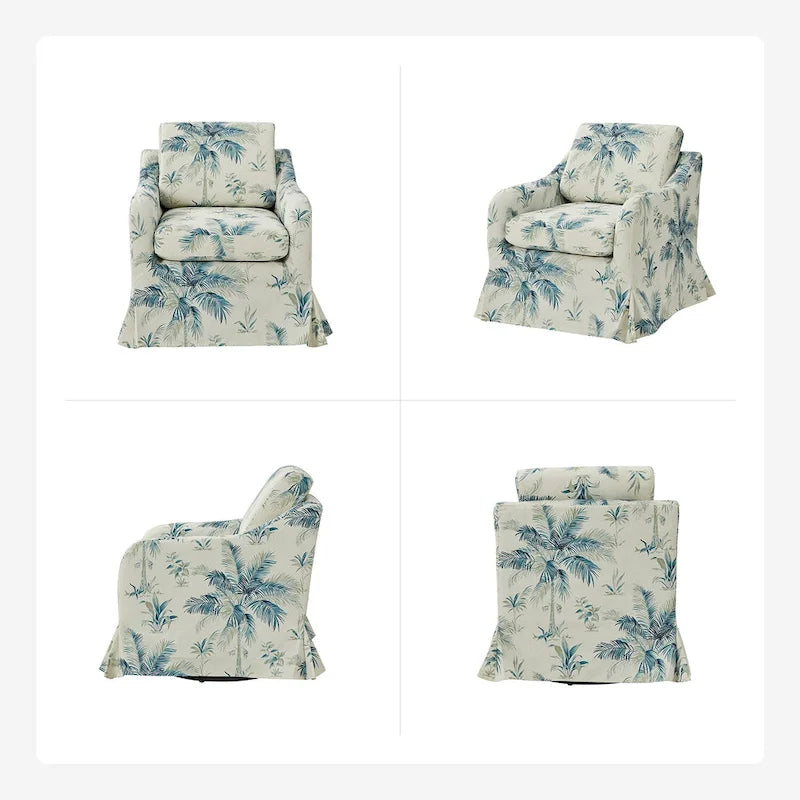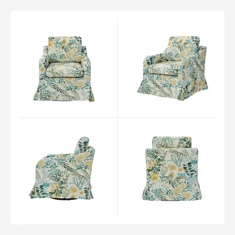Thistraditional slipcover swivelaccent chair set brings your space an inviting seat and curated accent. This chair set boasts a distinctiveslope arm silhouetteand ahigh pillow backfor ultimate comfort. Theremovable and reversible cushionfeatures a stunningfloral fabric digital print, offering a touch of elegance to any space. Theversatile variety of fabric patternsensures a personalized touch to complement your decor. Crafted from a fabric blend containing10% cotton and 90% polyester fibers, the slipcover not only featuresa zipperfor effortlessremoval and cleaningbut is alsomachine washable. With a durablemetal baseallowing a360 swivel, this chair set combines style and convenience seamlessly. Elevate your living space with this chic and functional accent chair set.It adapts to traditional, transitional, glam, coastal, rustic, lodge, farmhouse, bohemian, and more style.