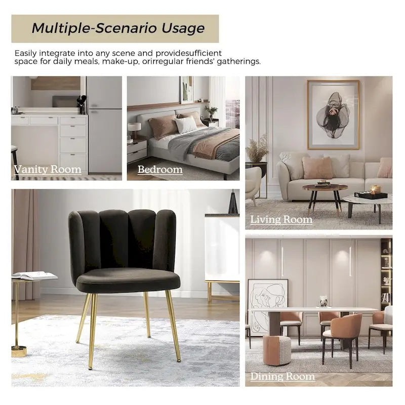 Upgrade your home or office with the Anjela Side Chair with Tufted Back. With a minimalist and elegant design, this chair is perfect for those who want to combine style and comfort. The vertical channel tufting and soft cushion provide ample support as you sit. The velvet polyester fabric is both luxurious and easy to maintain, while the slender gold metal legs offer stability and a timeless fashion statement. Assembly is a breeze, and it's easy to add some personality to your space with this enchanting piece.