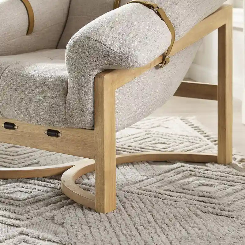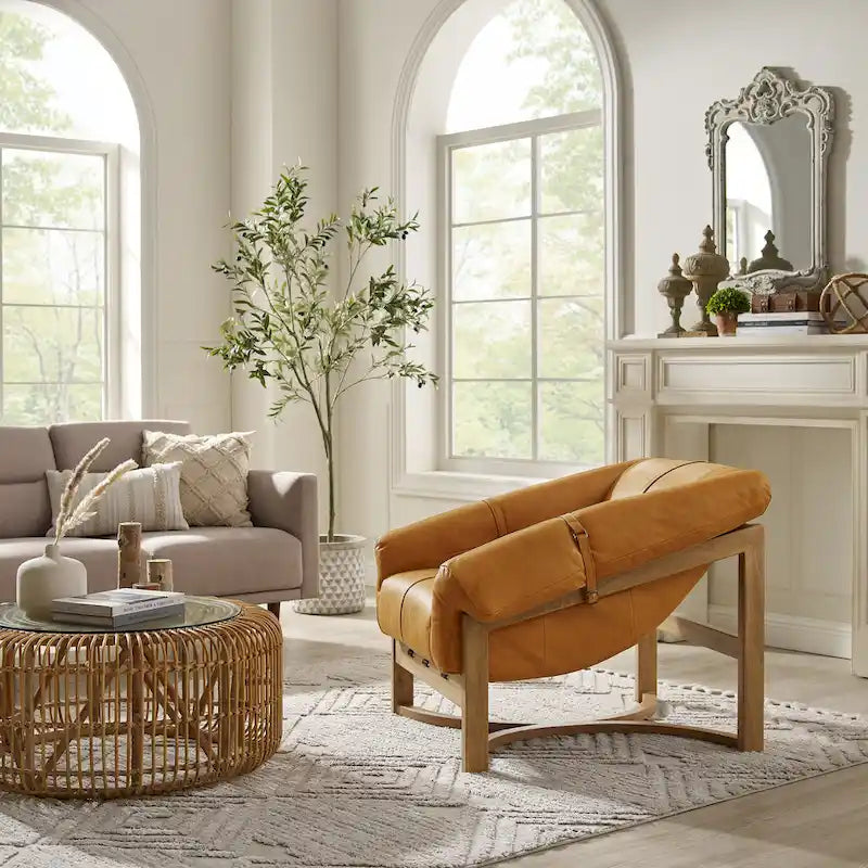 Relax in style with the Art Leon Genuine Leather Lounge Chair, inspired by mid-century modern architecture. Choose from top-grain leather or burlap fabric upholstery to suit your unique style. Perfect for use as an accent arm chair, side chair, club chair, corner chair or more. This chair is built to last, with a sturdy solid wood frame and high-density foam filling. The leather belt buckle trim adds a touch of sophistication to this comfortable and practical piece.