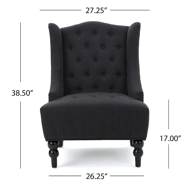 - Crafted with painstaking details, including a gentle wingback design and button-tufted diamond stitching, this piece offers your interior space a perfect classic touch.