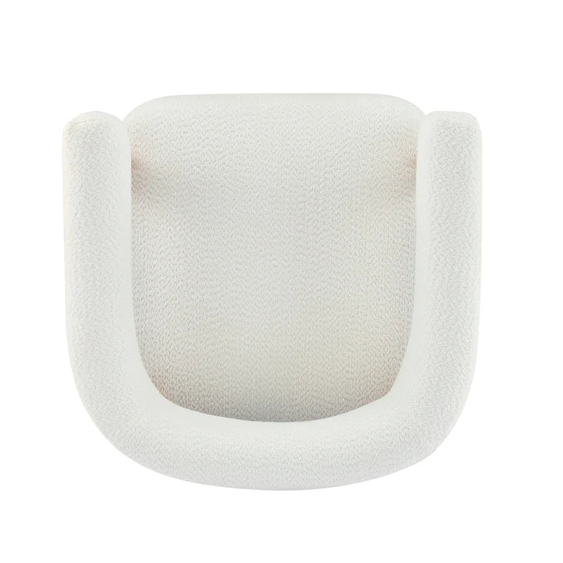 Boucle Upholstery for Cozy Comfort: The chair is wrapped in soft, textured boucle fabric, creating a welcoming and stylish seating experience. The fabric's looped weave adds depth and warmth, enhancing both visual appeal and tactile comfort. Its durable composition ensures the material retains its shape and elegance over time, suitable for frequent use or casual relaxation.