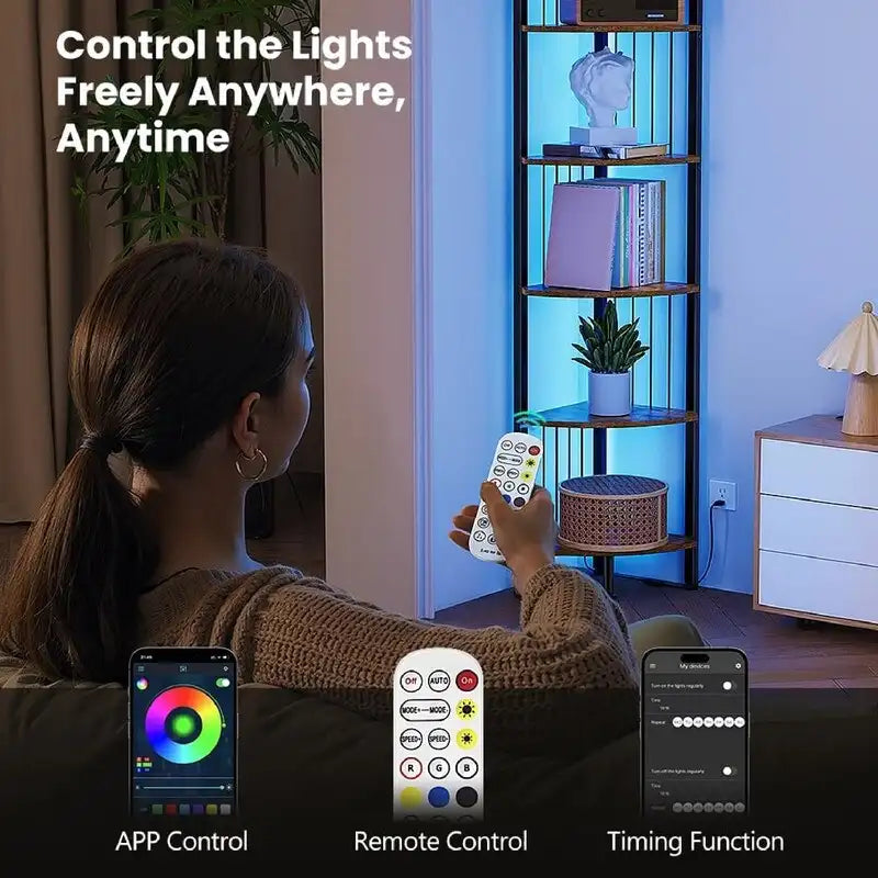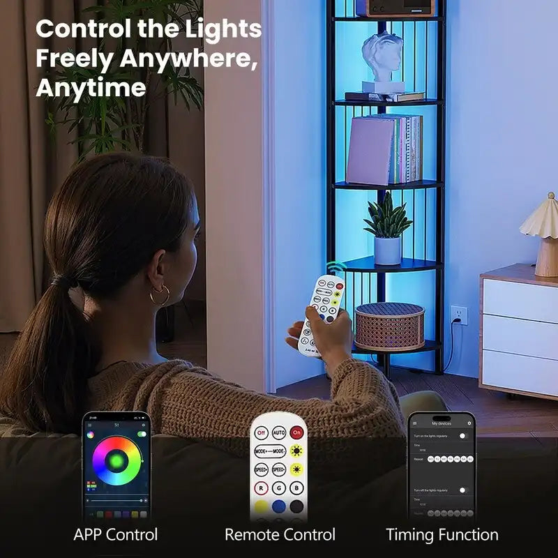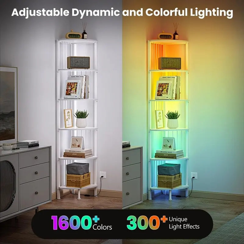 Dynamic Alluring Lighting:This 6 Tier Corner Shelf features 16 million colors and over 300 dynamic scene modes.Imagine coming home and the soft lighting instantly relaxing your tired soul. In the game room,set cool lights to enhance the excitement of the game process.Whether you're quiet,entertaining,or work,It brings unparalleled visual enjoyment to your space.