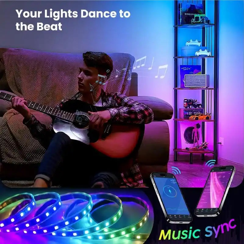 Sync with Your Music: When the Corner Bookshelf activates music mode,the color and brightness of the lights dance to the beat of the music or game audio.The enchanting lights enhance the overall atmosphere of the party.The guests are dancing, laughing,that gets everyone moving and immersed in the moment.