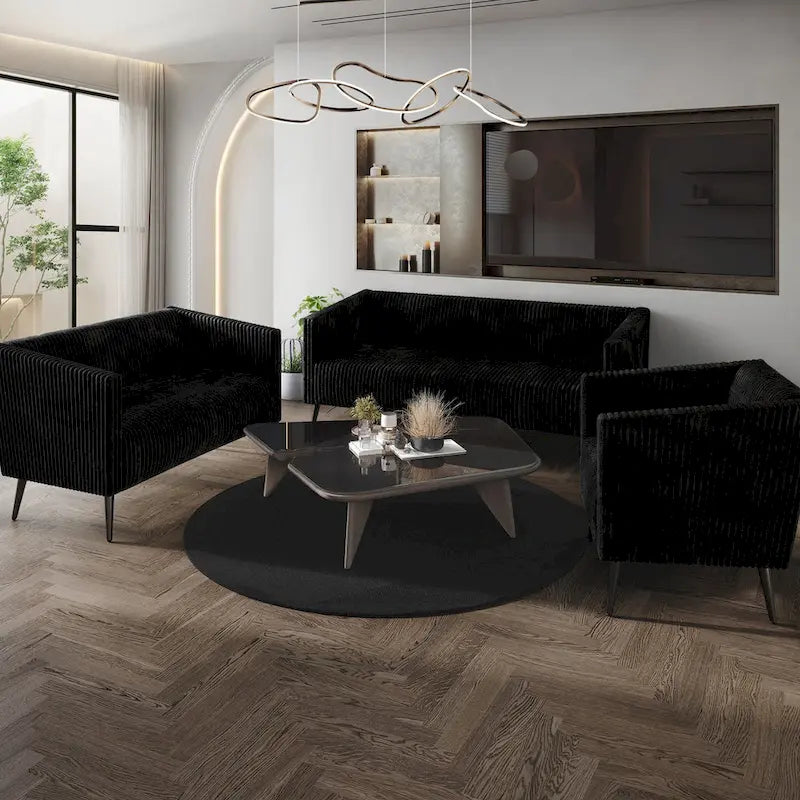 CraftPorch Corduroy Modern and Glamorous Velvet Upholstered 3-Piece Living Room Set