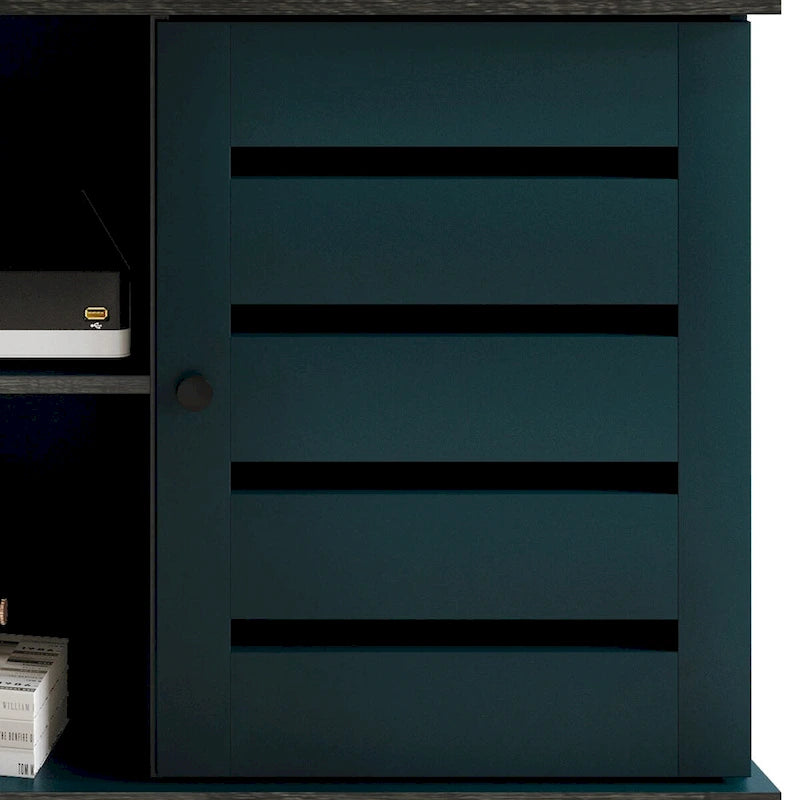 Redefine your entertainment setup with our versatile TV stand, featuring a spacious 47-inch wide top surface. Crafted from solid and engineered wood, it ensures durability while blending seamlessly into any decor. Keep cables organized with two media compartments, each equipped with two cable management holes. Enhance storage with two large cabinets adorned with knob handles, providing ample space for media devices and accessories. Designed for stability with a full floor base, it's offered in Blue, Green, Light Brown, Grey Oak, and White options to match your style. Enjoy easy assembly with included instructions, all conveniently packaged in one box