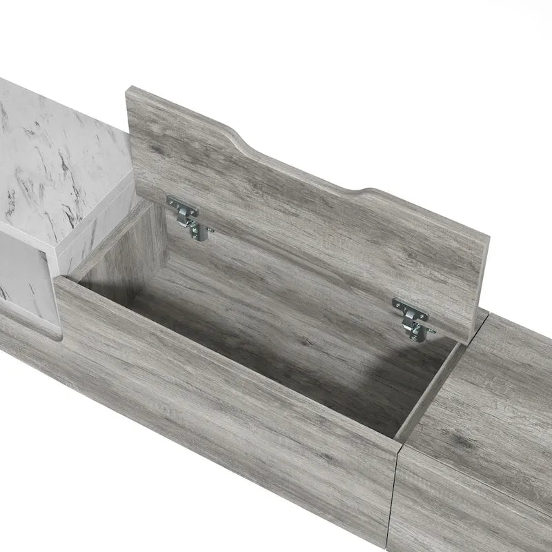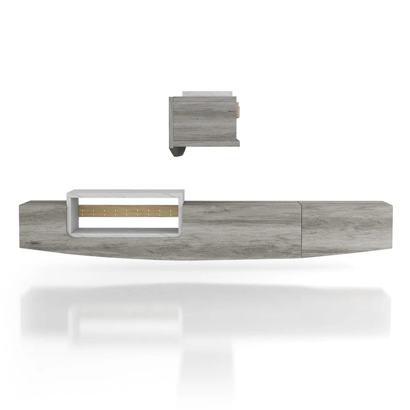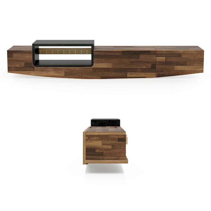 With this DENHOUR BASIC Contemporary 63-inch 1-Shelf Floating TV Console with Drawer and Lift-top Storage, your living room will take on a modern grace. The mountable console features a removable shelf, hidden storage, lift-top compartment and a drawer that lends space for remote controls and batteries.