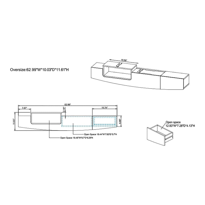 - Overall: 12 inches high x 63 inches wide x 10 inches deep