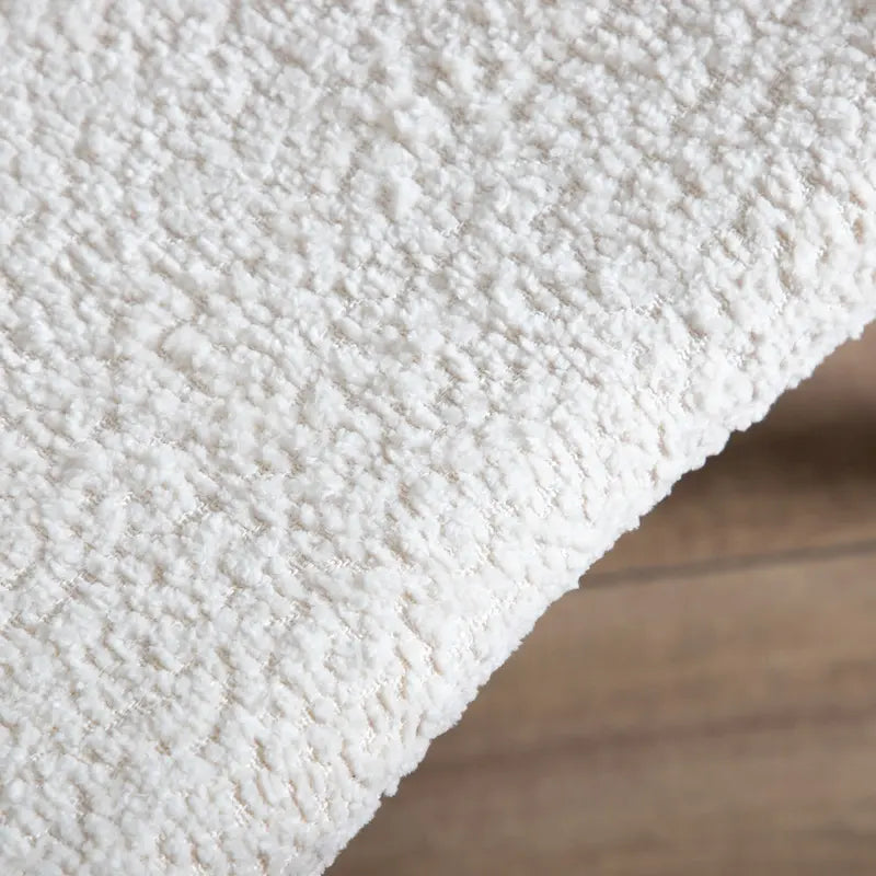 - Textured ivory boucle fabric along chair back and padded seat