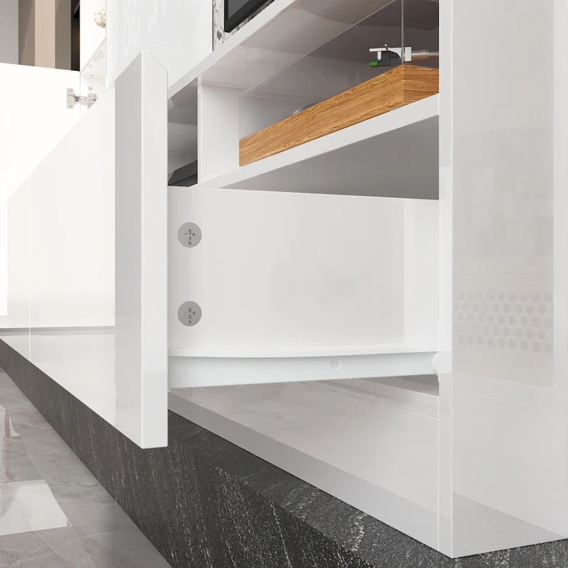 The modern design of this entertainment center complements a variety of interior settings. Finished in high-gloss white, it adds a touch of sophistication to your living space. Whether it's your living room, bedroom, or den, this piece seamlessly fits in and elevates the overall atmosphere.