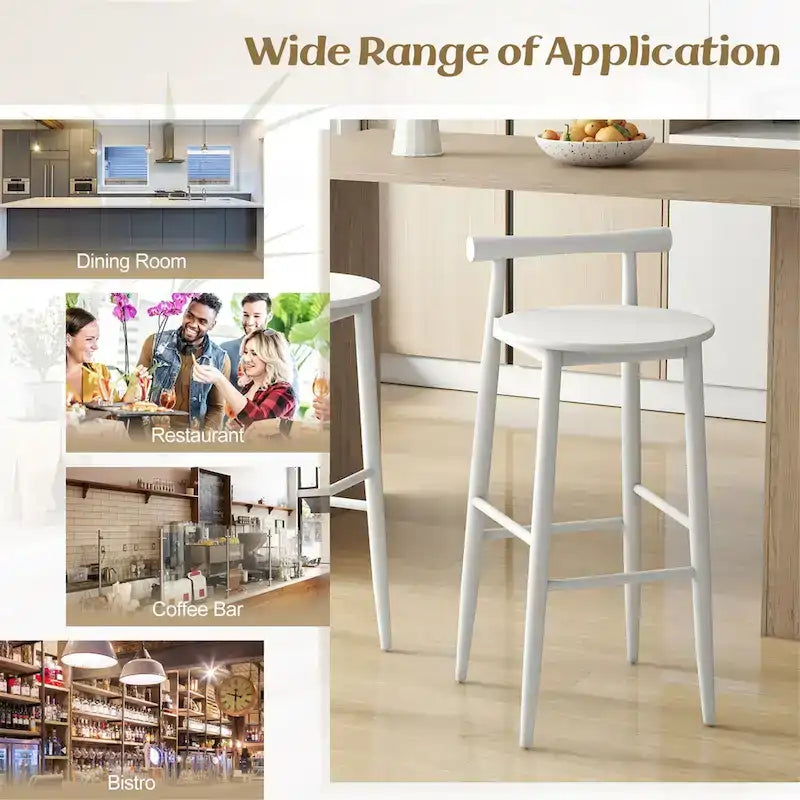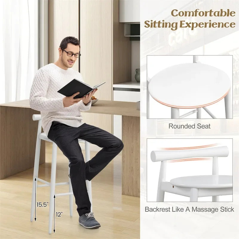 Add sophistication to your room with our bar chair set of 2!The wooden kitchen island bar chairs are designed with a rounded seat, comfortable backrest and rubber wood footrests of 2 heights for ultimate relaxation. Besides, these sleek bar height stools feature a sturdy wood frame and resilient acacia wood legs for lasting quality, which not only unveil the charm of nature in your dining space but also provide strong support. The smooth surface is polished with delicate craftsmanship to elevate the aesthetics of your home, breakfast area, restaurant, or cafe. Lastly, you can elevate your seating experience to prevent wobbling with adjustable foot pads.