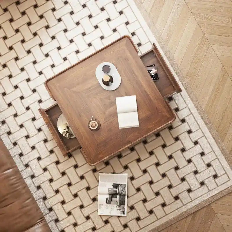 Industrial Walnut Coffee Table with Hidden Drawers - 39.37 x39.37 x12.6