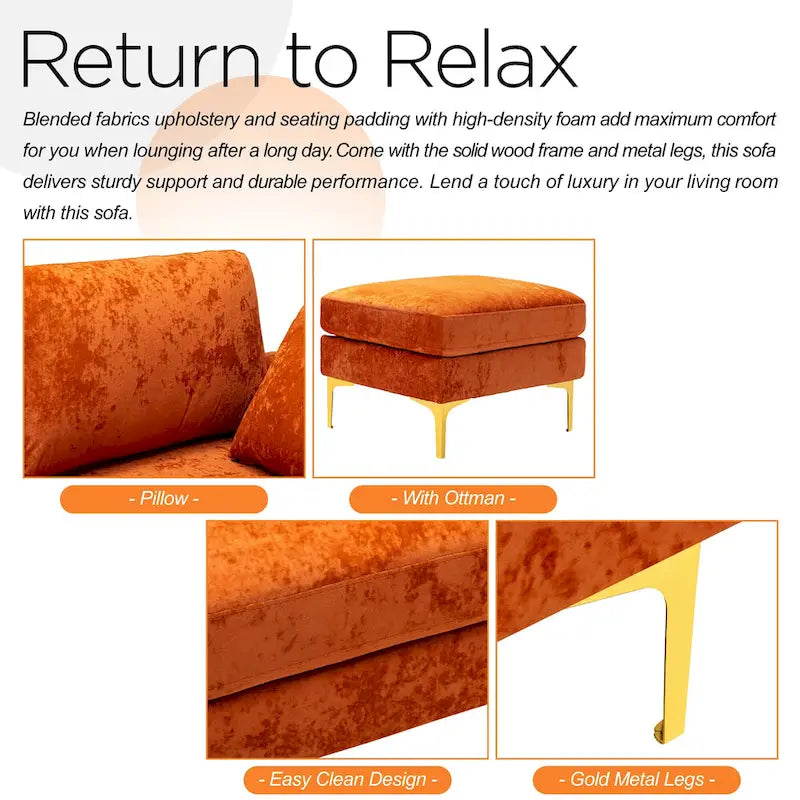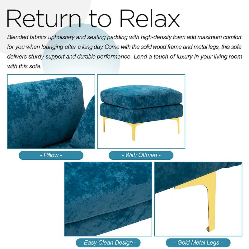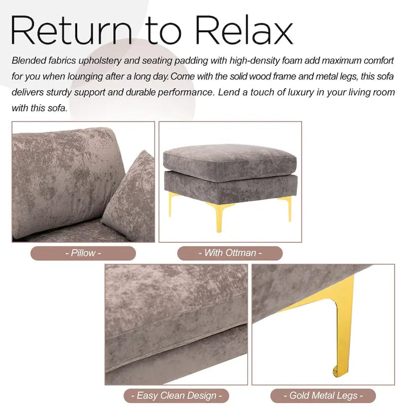 Blended fabrics upholstery and seating padding with high-density foam add maximum comfort for you when lounging after a long day. Come with the solid wood frame and metal legs, this sofa delivers sturdy support and durable performance. Lend a touch of luxury in your living room with this sofa.