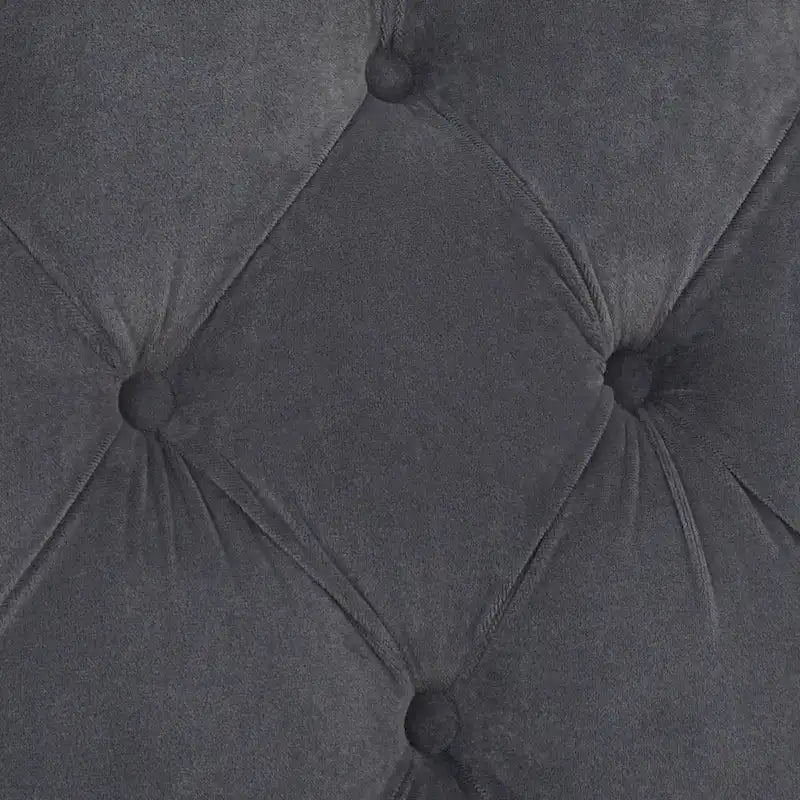 Bring an upgraded sense of style to your living room furniture set with this Lifestorey Chesterfield back sofa. This sofa features a clean and modern look with upscale button tufting and tuxedo style arms completing its classic appearance. Smooth linen-like fabric upholstery adds a soft finish to the comfortable and supportive foam-padded seat cushions and back. Black-finished rubberwood legs provide reliable sturdiness and even weight distribution for up to three. The strong MDF frame keeps this sofa rigid and structurally sound for daily use.