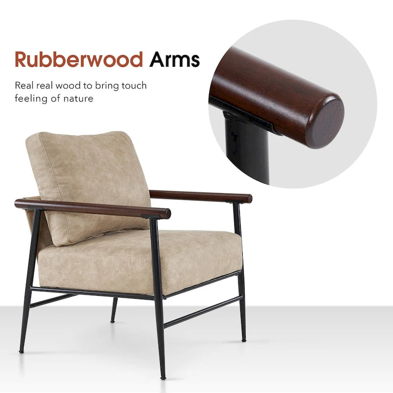 MCombo Set of 2 Modern Accent Chairs, Armchair with Upholstered Cushion, Leathaire Fabric Lounge Chairs for Living Room 4748