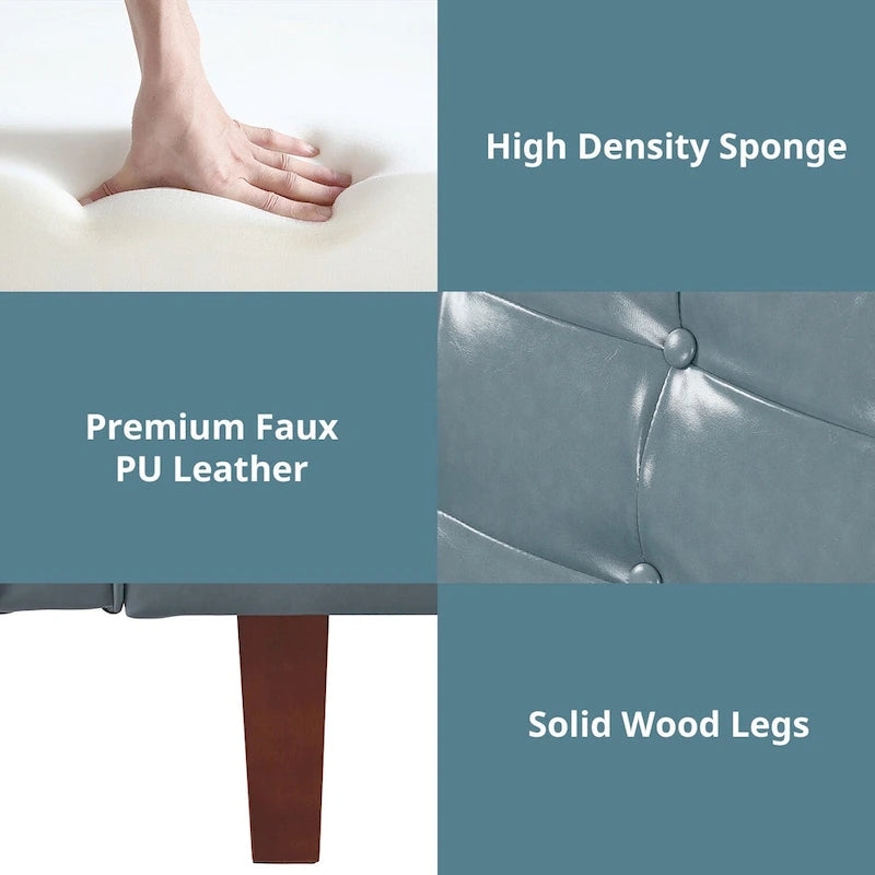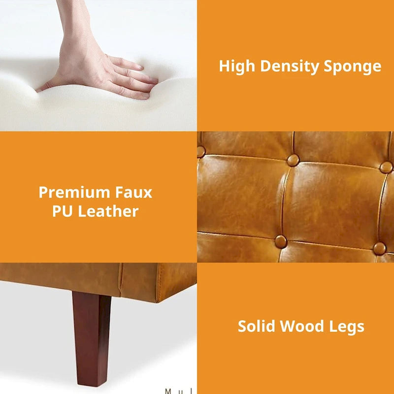 Mid-Century 74 in PU Leather Futon Sofa Bed, Button Tufted Sofa 3-Seat for Living Room Bedroom
