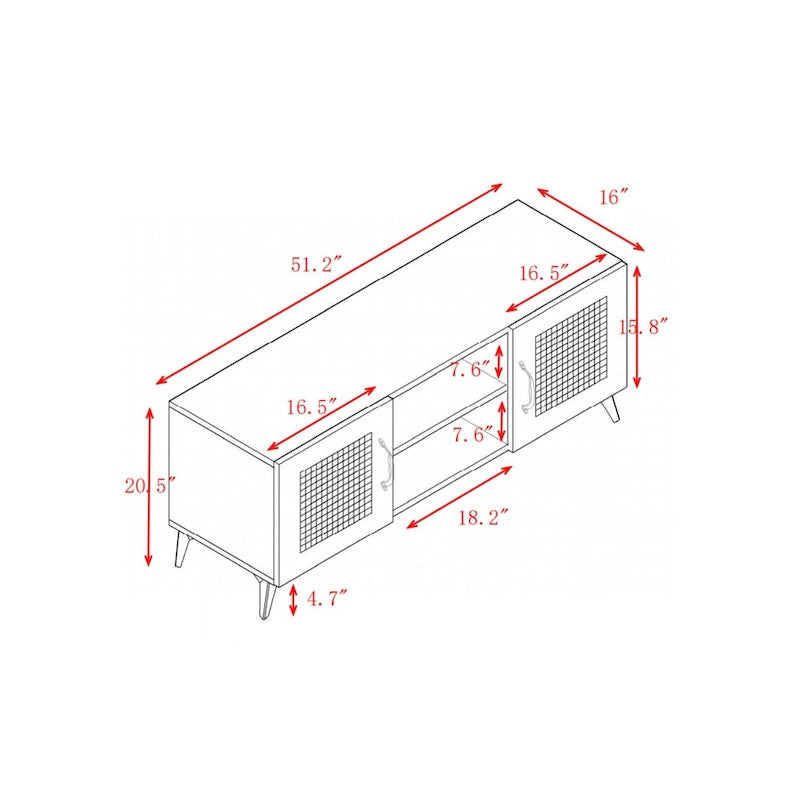 Oak Rattan TV Stand Storage Cabinet Entertainment Center 51.2 Inch - 16.00 x 51.20 x 20.50