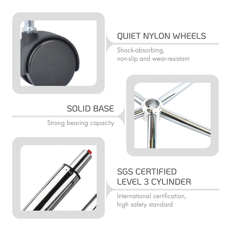 The rolling chair comes with a BIFMA X5.1 certified gaslift spring that has undergone rigorous tests of quality, safety and durability. This means you're assured of getting the best in class, in addition to peerless style.