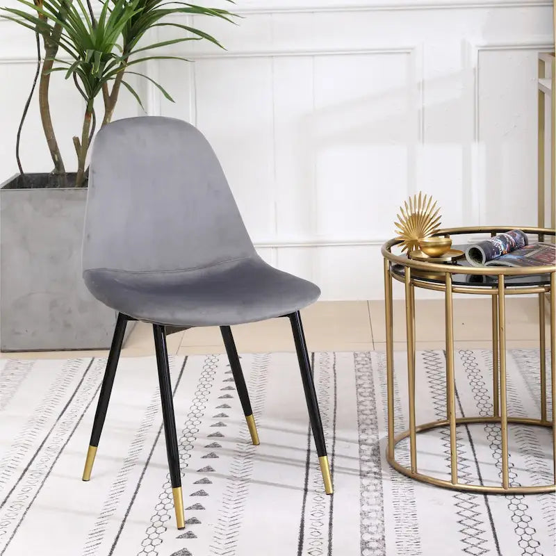 - [PLUSH VELVET CHAIRS]: The chair is crafted from sturdy wood, the leg has a metallic black finish with a gold end for durability. Additionally, the chair is upholstered in plush velvet to make your dining area truly exceptional. It is upholstered with dense foam padding seat and back for uncompromising comfort.
