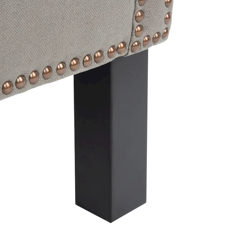 The updated silhouette of the Arm Chair is designed for the stylish new traditionalist. Delicate roll arms and curved wing back are enhanced by handsome fabric. Chic brass nail heads, a plush seat cushion, and straight birch legs in a java finish complete the look.