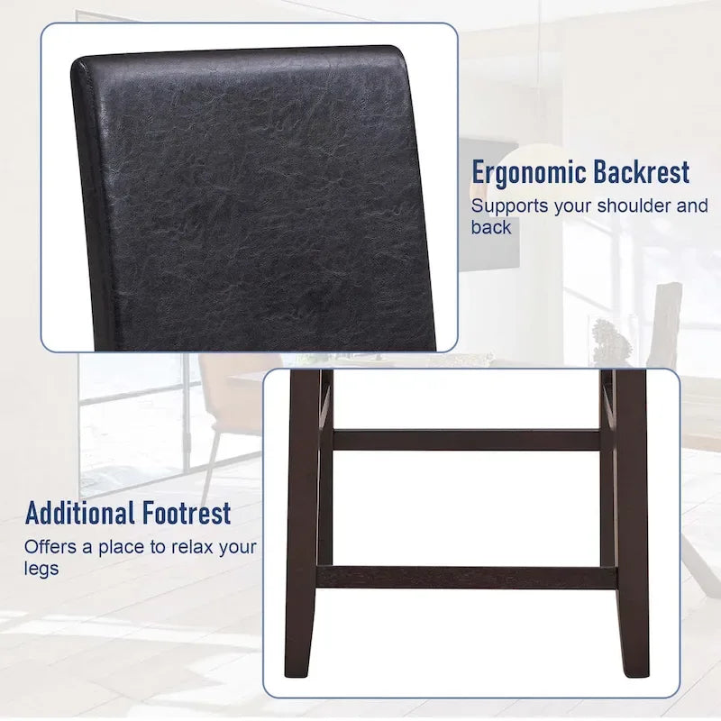 Our bar stools are perfect for restaurant, bistro and coffee house! These bar stools are filled with soft foam to create a comfortable sitting experience. The top of seat is covered with wear-resistant and breathable PU leather, allowing you to sit cozily for long hours. Besides, our stools fit in well with the shape of buttocks to contribute to good blood flow. In addition, footrests underneath the seat allow you to rest your feet as well as provide extra stability. You can easily carry it to anywhere with its light weight.