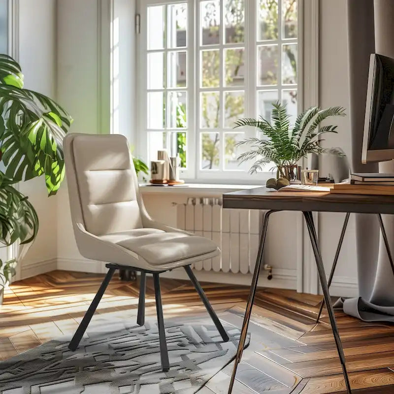 Complement your vanity or dressing table with the rotate dining room chair's elegant and functional design. The chair's high backrest and 360-degree rotation provide ample support and ease of movement, ensuring a comfortable and convenient experience as you prepare for the day ahead