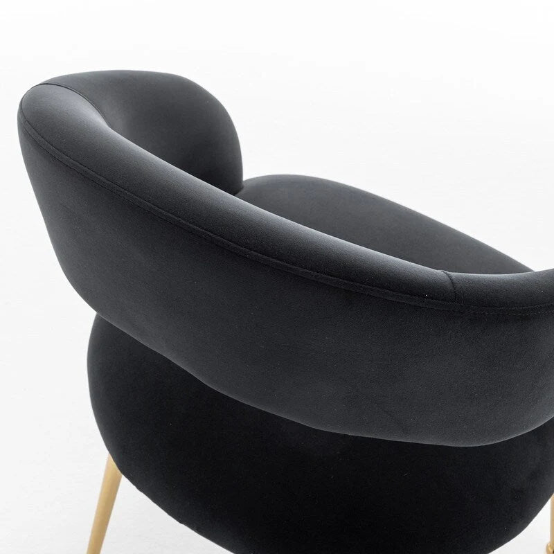 SEYNAR modern fashion style dining chair is made of high quality velvet fabric, smooth, soft, comfortable and easy to take care of. The backrest of the chair is hollowed out to ensure sturdiness and elegance at the same time, and the downward sloping armrests can provide ergonomic support for your arms when you are tired. The legs are made of 4 sturdy metal with gold-colored elements, providing superior load bearing and elegance at the same time. Perfect for dining rooms, living rooms and bedrooms.