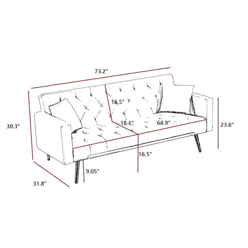 Upgrade your living space with this sophisticated modern contemporary sofa bed, a perfect fusion of luxury and functionality. Draped in plush velvet, it features a tufted back and seat that exude elegance while ensuring maximum comfort with high-quality foam cushioning. This versatile piece easily converts into a twin bed, making it ideal for both relaxing during the day and accommodating overnight guests. With three adjustable positions, you can effortlessly customize your seating or sleeping experience, whether you prefer to sit upright, lounge back, or lay flat. The sturdy construction, supported by four sleek metal legs, not only provides reliable stability but also enhances the sofa's modern aesthetic. Additionally, its straightforward assembly process allows you to quickly enjoy this stylish and practical addition to your home.