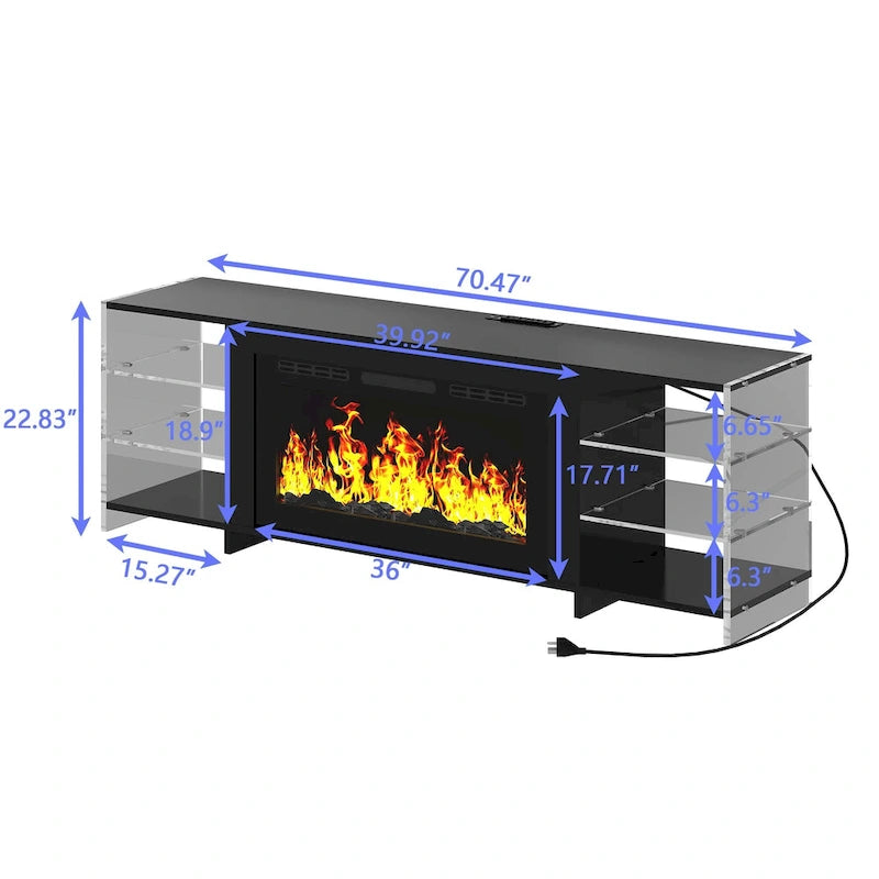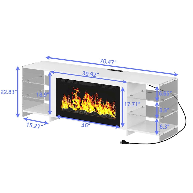 [ELECTRIC FIREPLACE INCLUDED] Enjoy the warmth and beauty of a fireplace without the smoke and ashes. Comes with a 120 V, 1400W electric fireplace that can warm up rooms up to 400 square feet.