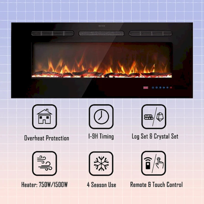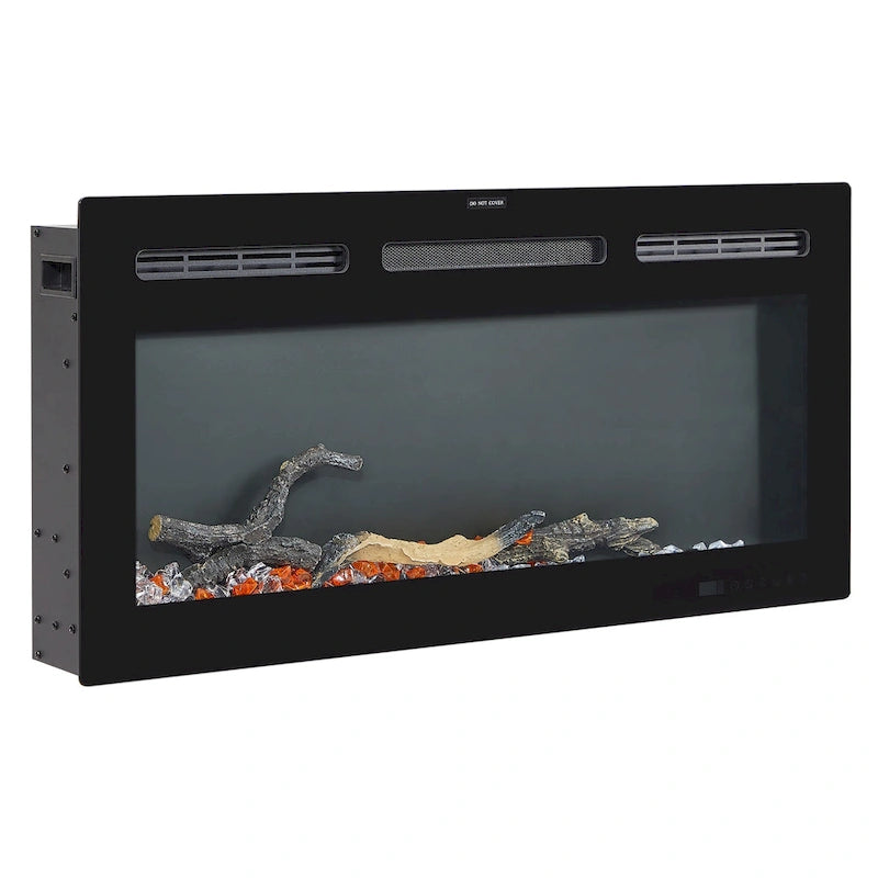 [SAFETY FIRST] Designed with overheating safety protection, this fireplace automatically shuts down before it gets too hot. Use the included remote control to easily adjust the temperature. A LED display showcases the glowing embers for a realistic look.