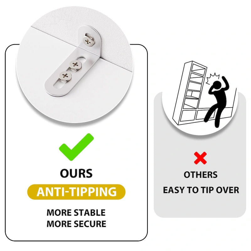 - This set comes with an anti-tipping device as an option, allowing you to secure it to the wall if you are concerned about stability.