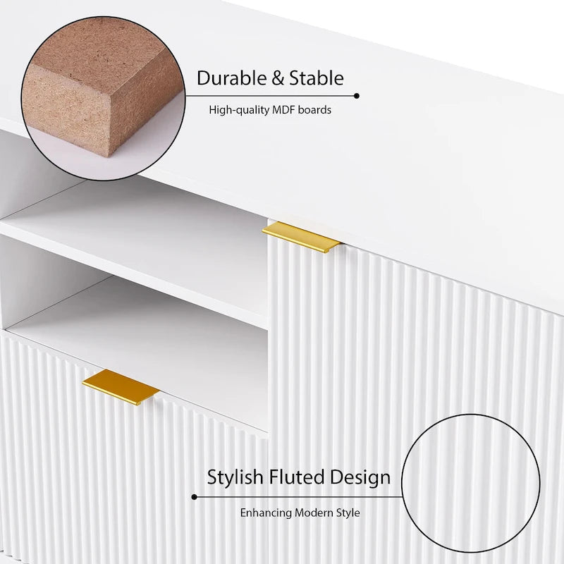 - The surface of this set is intricately designed with flutes, adding a stylish and modern touch to the overall aesthetic. Constructed with high-quality MDF boards to guarantee durability and longevity.