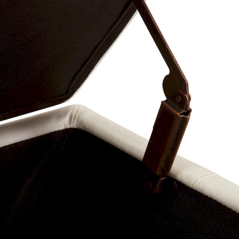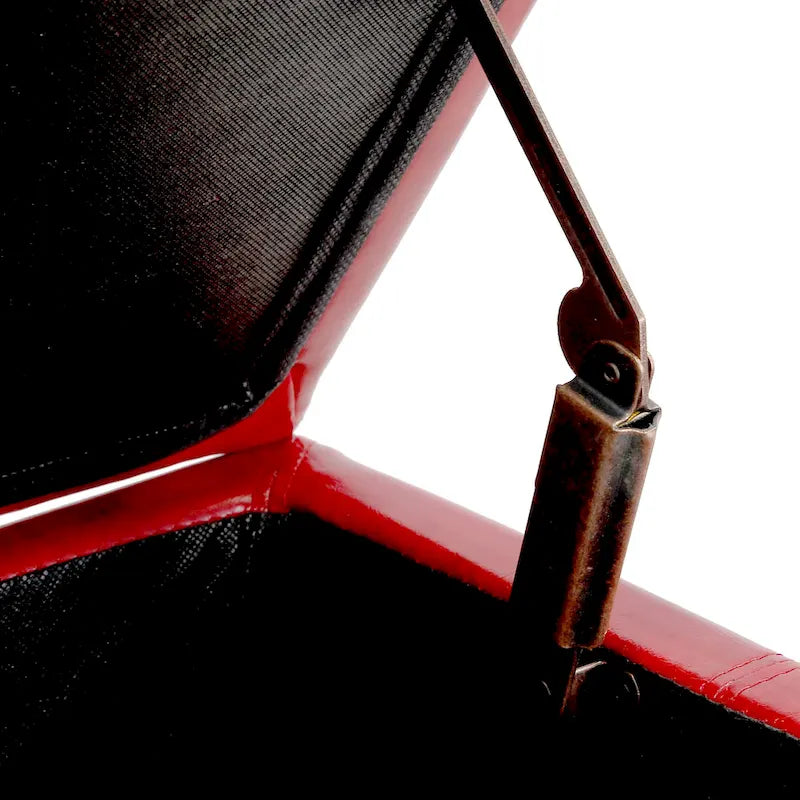 - Large interior hidden storage space with child safety hinge to prevent lid slamming